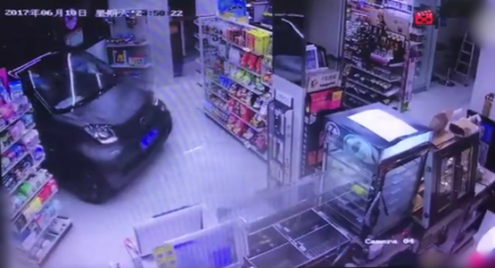 بالفيديو .. رجل صيني يقتحم متجراً بسيارته لشراء وجبة خفيفة !