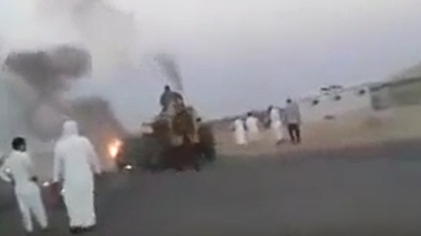 بالفيديو .. سحب سيارة مشتعلة من محطة وقود في السعودية