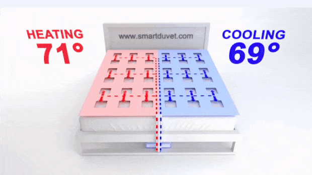 أنت تشعر بالحر وشريك حياتك يحس بالبرودة أثناء النوم. تلك المشكلة الكلاسيكية التي يعاني منها بعض الأزواج، لذا ابتكرت شركة كندية حلاً مذهلاً يتمثل في لحاف سرير ذكي يمكن ضبط درجة حرارته وتخصيصه حسب تفضيلات الشريكين معاً في آن واحد.
