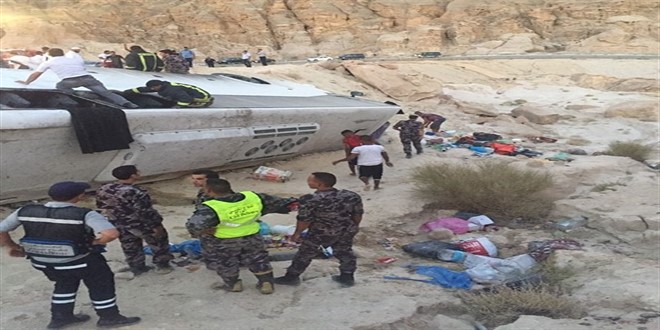 لقي ستة معتمرين حتفهم فيما أصيب 38 آخرون بجروح إثر تدهور حافلة كانت تنقلهم جنوب الأردن، بعد عودتهم من السعودية، وفقا لبيان أصدره الدفاع المدني الاردني الاثنين.
