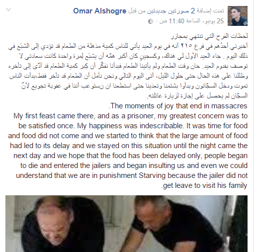 عمر الشغري (معتقل سابق في سجن صيدنايا – لاجئ حالياً في السويد) – فيس بوك