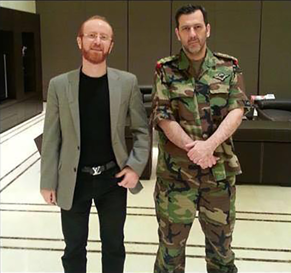 وأظهرت الصور التي انتشرت على نحو واسع، مساء أمس، ماهر الأسد مرتدياً “البدلة العسكرية”، إلى جانب الممثل الموالي، وطليق ابنة بشار الجعفري، مصطفى الخاني.