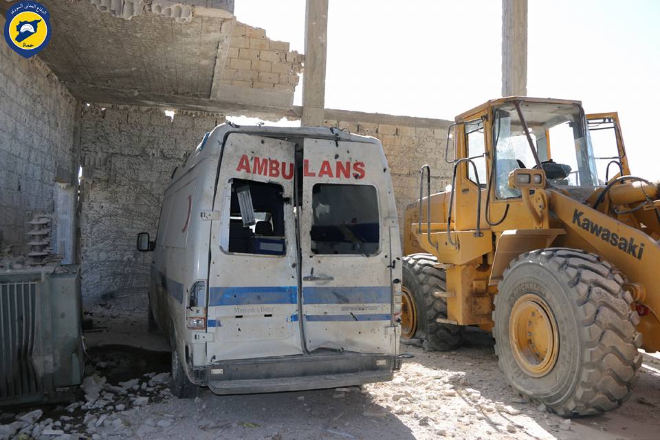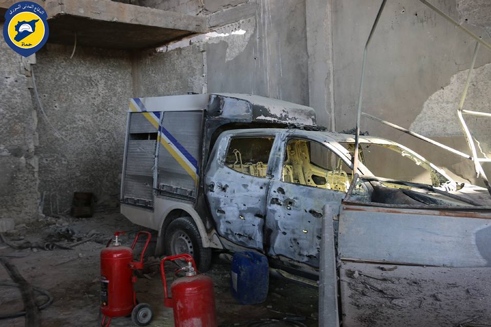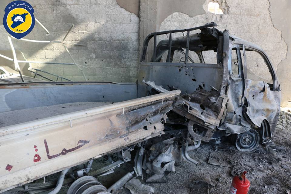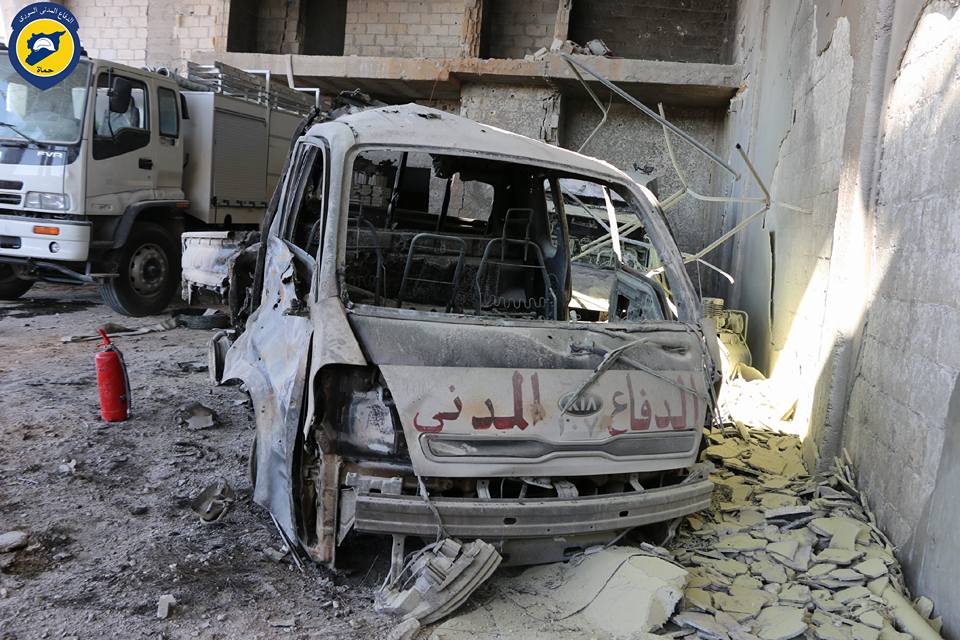 حماة : مدفعية بشار الأسد تقصف مركز الدفاع المدني في كفرزيتا و تدمره بشكل شبه كامل ( صور )