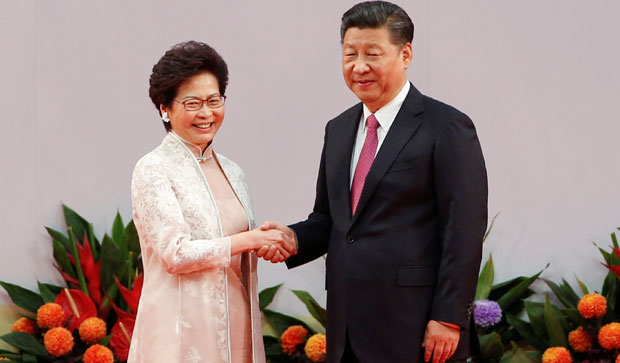 أدت الرئيسة التنفيذية الجديدة لهونغ كونغ كاري لام السبت 1 يوليو/تموز، اليمين أمام الرئيس الصيني شي جين بينغ خلال احتفال المستعمرة البريطانية السابقة بمرور 20 عاما على عودتها للصين.