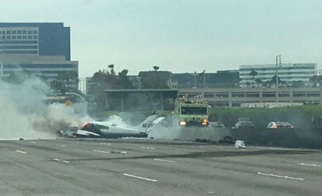 تحطمت طائرة صغيرة، على طريق سريع، قرب مطار جون واين في #كاليفورنيا ، بمقاطعة أورانج، على بعد 50 كلم جنوبي شرق لوس أنجلوس.