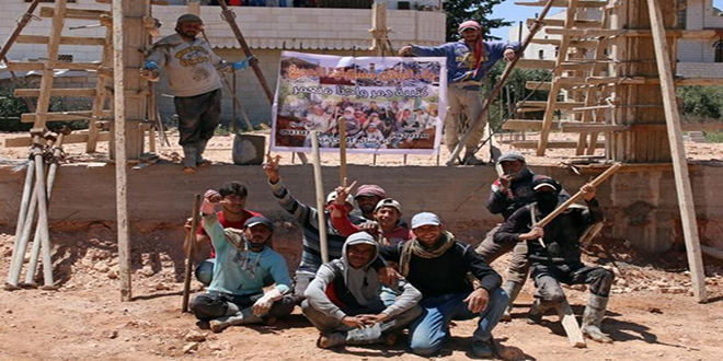 ” كتيبة صب الباطون .. دمر و إحنا نعمر ” .. عمال سوريون يتحدون القصف بإعادة الإعمار في درعا ( فيديو )