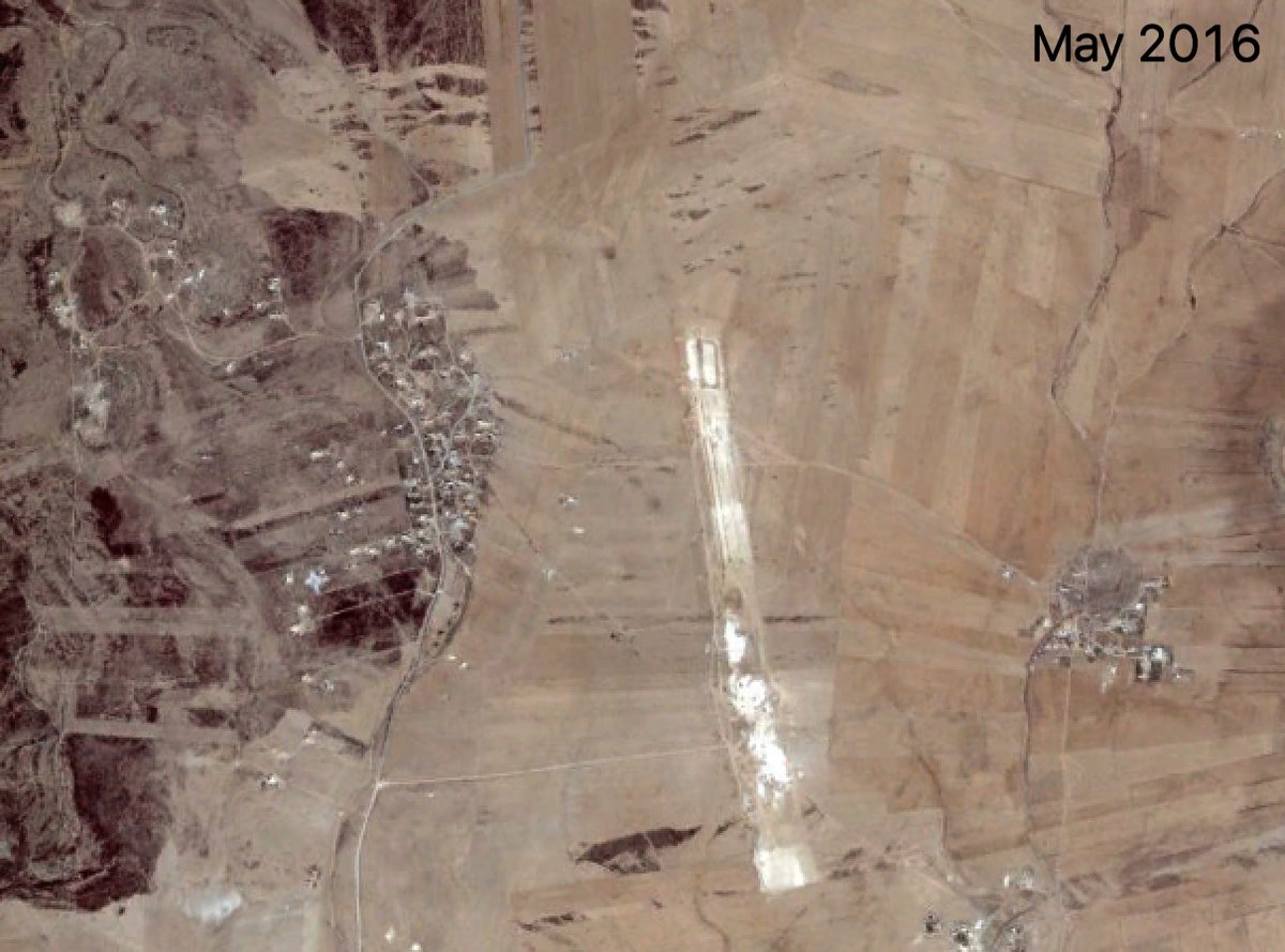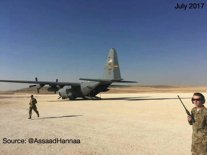 والتقطت ثلاث من أربع صور عبر قمر اصطناعي، وتظهر وتائر عمليات البناء منذ شهر نيسان المنصرم، بينما تظهر الرابعة طائرة نقل أمريكية فور هبوطها على مدرج جاهز في تلك القاعدة.
