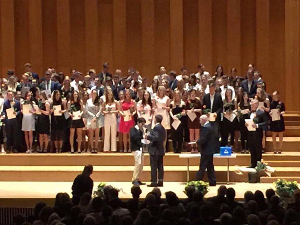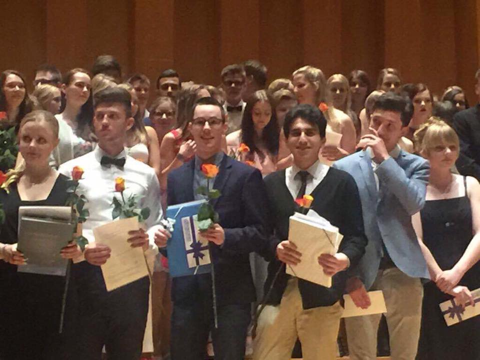 وفي حفل توزيع الشهادات، تم تكريم الشاب إلى جانب 9 من زملائه الألمان، لتوفقه في المواد العلمية وحصوله على العلامة الأفضل في مادة الفيزياء، في الفحوصات النهائية.