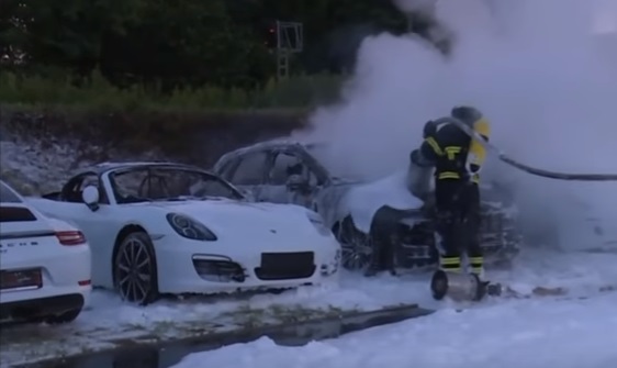 ألمانيا : حريق يلتهم 12 سيارة بورش و الشرطة تعتقد أنه مفتعل ( فيديو )