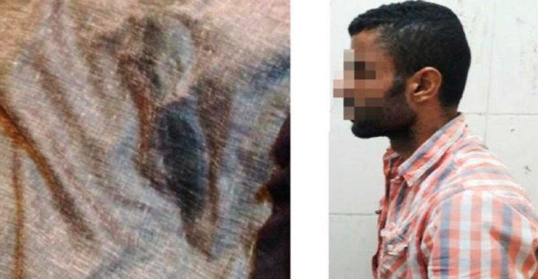* الصورة : الجاني و آثار المادة الحارقة التي رشقها على إحدى الضحايا
