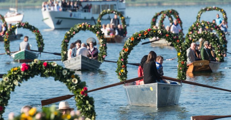 بقوارب مطلية بألوان زاهية انطلق عدد من الزوار في ساعة مبكرة من يوم الاثنين في موكب ببحيرة “بودنزيه” في بلدة موس جنوبي ألمانيا للوفاء بنذر تقليدي انطلاقا من عقيدتهم بأن هذا النذر يحمي بلدتهم من الإصابة بوباء.
