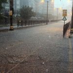 وهطلت أمطار غزيرة مصحوبة بالبرق والرعد في ساعات الصباح، وتجمعت مياه الأمطار في الشوارع وأعاقت حركة المرور.