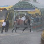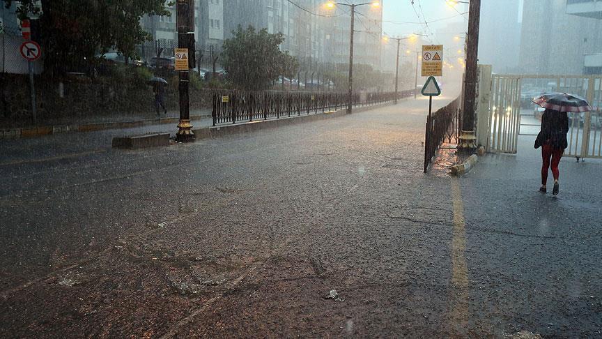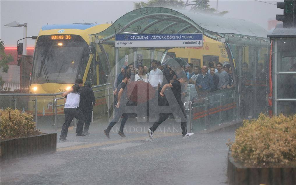 واحتمى بعض المواطنين بمواقف الحافلات وأسفل جسور المشاة والأماكن التي لا يصلها المطر. (ANADOLU)