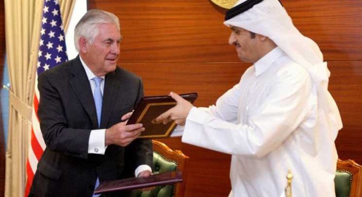 وتوصل وزير الخارجية الأمريكي ريكس تيلرسون إلى اتفاق مع قطر خلال جولة دبلوماسية استهدفت إنهاء أزمة دبلوماسية في الخليج. ولم يلق الاتفاق موافقة من الدول العربية الأربع المتحالفة مع الولايات المتحدة والتي تتهم الدوحة بدعم الإرهابيين وهو ما تنفيه قطر.