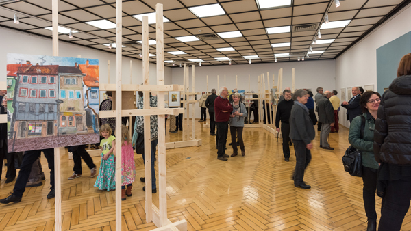 تساعد متدربة سورية في إعداد أحد المعارض لمدة أسبوعين، والذي سيتم افتتاحه في المتحف الفني بمدينة آلبتشاد، جنوبي ألمانيا.