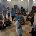 يتقاسم الرجال ويرتدي عدداً منهم قمصاناً زرقاء مساحة واسعة من الطابق الثاني. في احدى القاعات، يصرخ رجل بغضب ويغني ثان بصوت مرتفع ويفتح فمه حتى يظهر كامل فكه العلوي الخالي من الاسنان. ويقف ثالث قرب صورة قلب مرسوم على الحائط والى جانبه كلمة “حب” بالانكليزية.