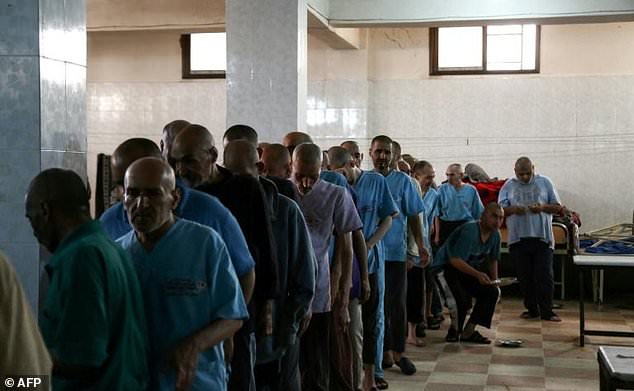 تنتظر مرضى عراة في مجموعات ان يحين دورهم الواحد تلو الاخر للحلاقة والاستحمام داخل مستشفى للأمراض النفسية والعقلية، هو الوحيد من نوعه في مناطق سيطرة الفصائل المعارضة في شمال سوريا، ويشهد منذ 2011 ازدياداً في عدد رواده.