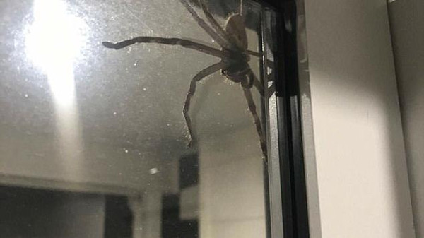 وشاهدت العائلة العنكبوت وهو يتسلق الباب الخلفي المطل على حديقة المنزل في الوقت الذي كانت فيه الزوجة تطهو بعض الطعام في المطبخ، حيث كان العنكبوت -لحسن حظهم- على الجهة الخارجية من المنزل وليس بداخله.