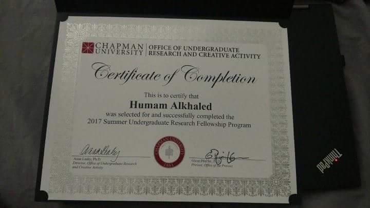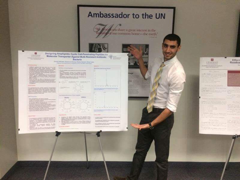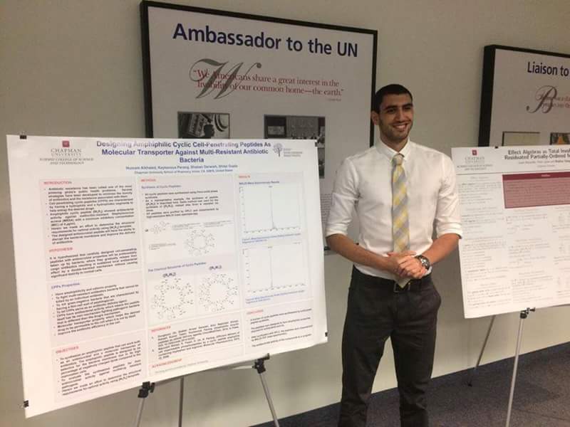 وتناقلت صفحات وشبكات إخبارية محلية، معلومات تفيد بحصول الطالب السوري همام الخالد على درجة تقدير في كلية الصيدلة بجامعة “تشابمان” في كاليفورنيا، بالولايات المتحدة الأمريكية، بعد إكماله بحثاً عن قتل البكتيريا المقاومة للمضادات الحيوية.