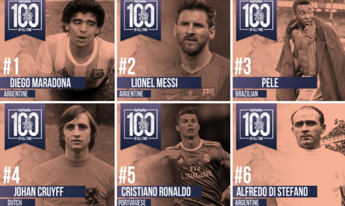 الأرجنتيني دييغو مارادونا يتصدر قائمة أفضل اللاعبين في كل العصور