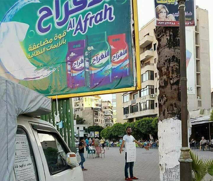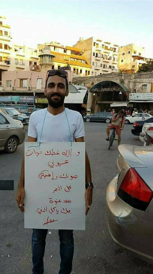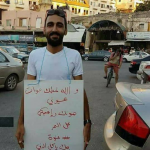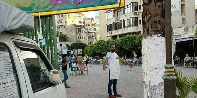 اللاذقية : شاب يعلق رسالة اعتذار برقبته و يقف في الشارع على أمل أن تعود له خطيبته ! ( صور )