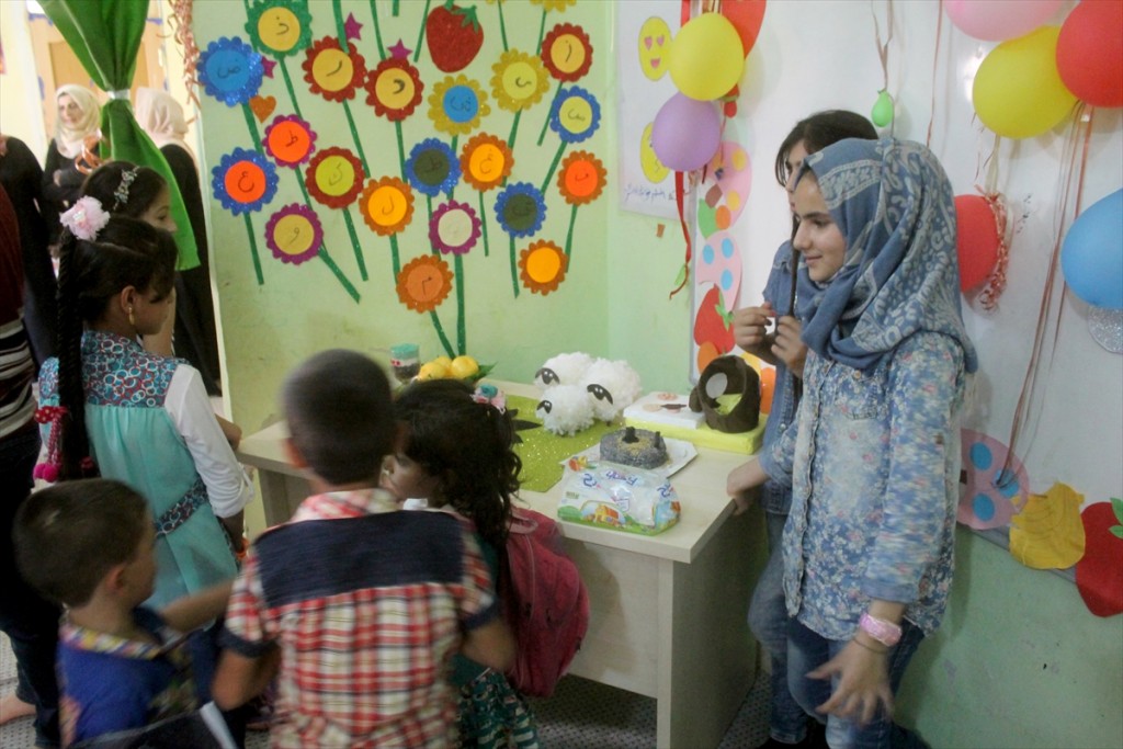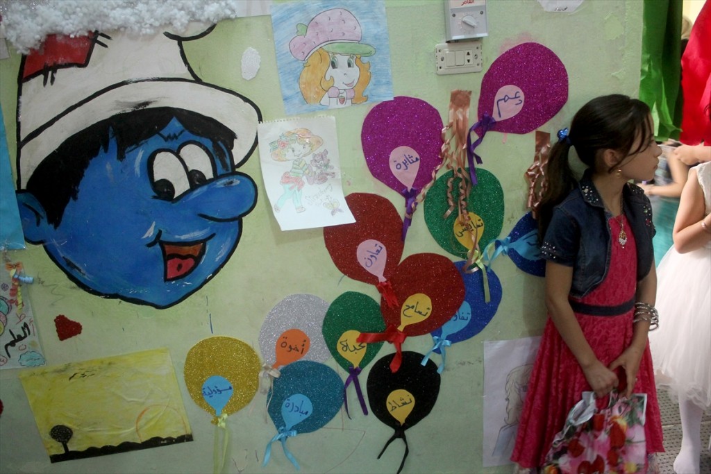 أما الطفلة ميس الحسن، قالت إنها ترسم شخصيات لرسوم متحركة، وأخرى عن الطبيعة. (ANADOLU)