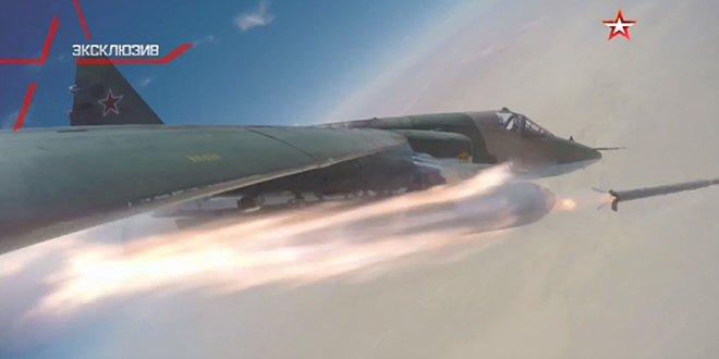 وأظهرت اللقطات التي نشرتها قناة “زفيزدا” على يوتيوب، أمس الأربعاء، طائرتي “سو 25” تحلقان وتقصفان مناطق في سوريا، لم يتم ذكرها.