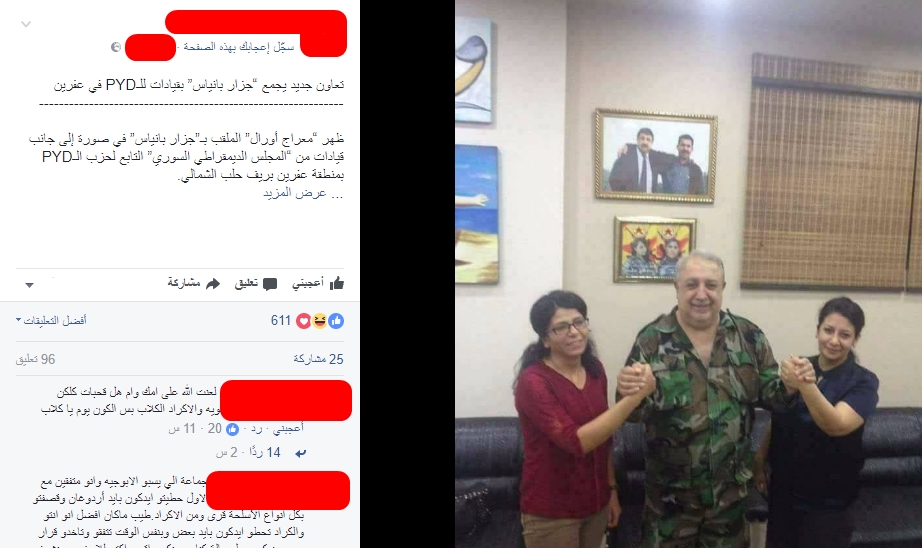 وزادت مصادر أخرى بالقول إن هذه الصورة تم التقاطها بعفرين، خلال زيارة لزعيم الميليشيا، تمت مؤخراً (لم يتم تحديد التاريخ).