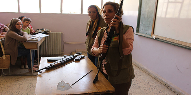 وذكرت وكالة “هاوار” الكردية، يوم الأربعا،ْ أنه تم فرز المعلمات المتدربات إلى مدرستين، وفي البداية، شرحت “عضوات قوات حماية المجتمع- المرأة”، كيفية فك وتركيب السلاح، وتحدثن عن أخطاره.