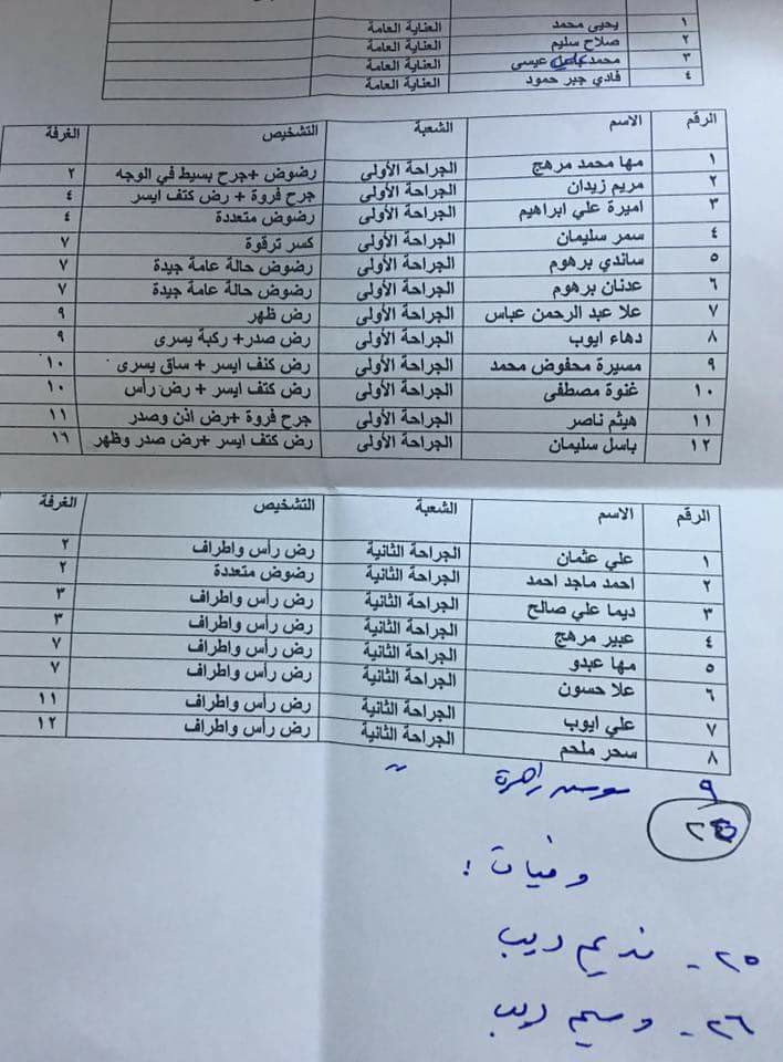 وأعلنت عن وفاة كل من وسيم سليمان حسين (مديرية الرقابة الداخلية)، ونديم سليمان ديب (مديرية الخدمات الفنية).