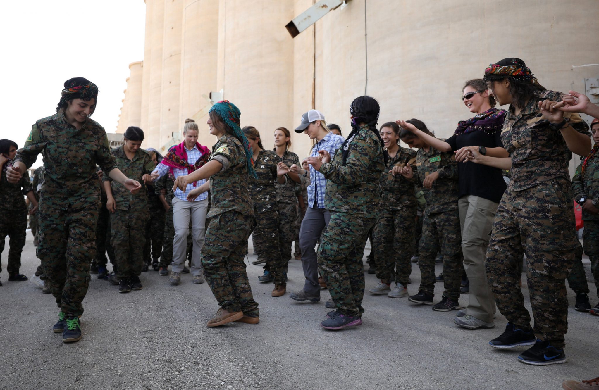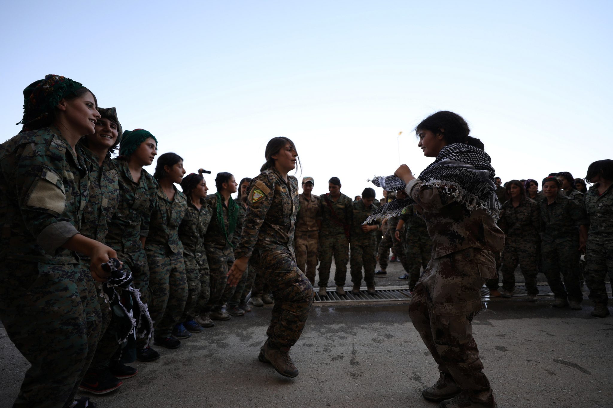 رقصت مقاتلات على أغان كردية في بلدة بشمال سوريا أول أمس الأربعاء بعد أن أكملن تدريبهن العسكري من أجل الانضمام للمعركة ضد تنظيم الدولة الإسلامية.