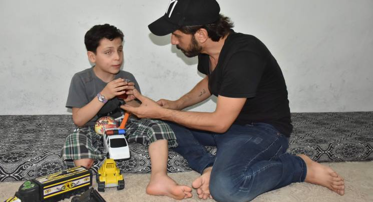 طفل سوري أفقدته قنابل ” داعش ” ساقه و عينيه يأمل بالحصول على طرف صناعي