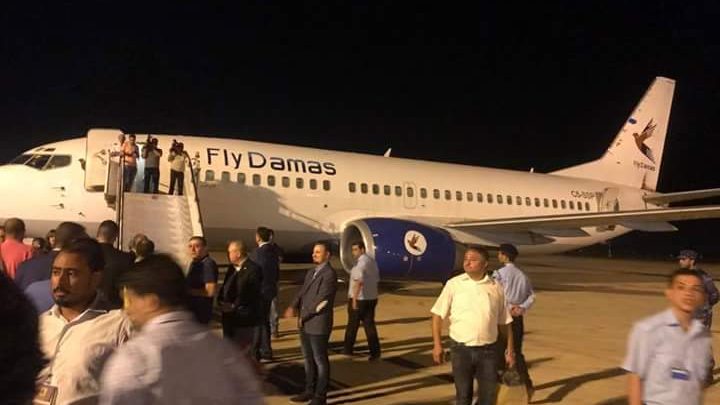 وصلت أول طائرة مدنية سورية الى مطار بنينا في بنغازي شرق ليبيا بعد توقف دام سبع سنوات.