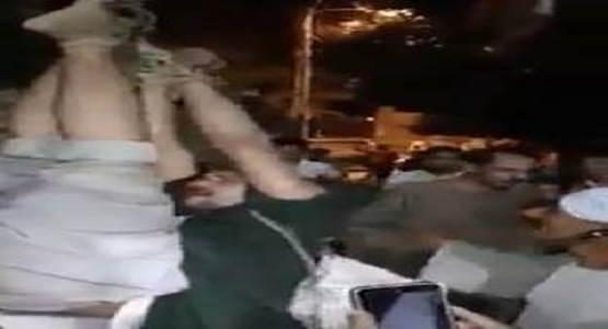 وقام الأهالي بربطه من يديه وقدميه وتعليقه بطريقة “الفلقة” والتعدي عليه بالضرب وتصويره.