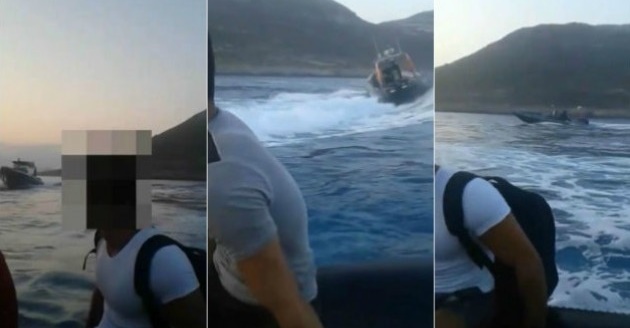 مقطع مصور يفضح كذب خفر السواحل اليوناني و محاولته إغراق قوارب اللاجئين ( فيديو )