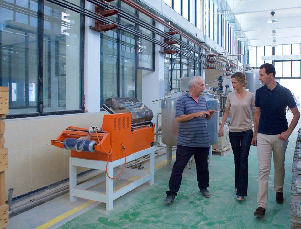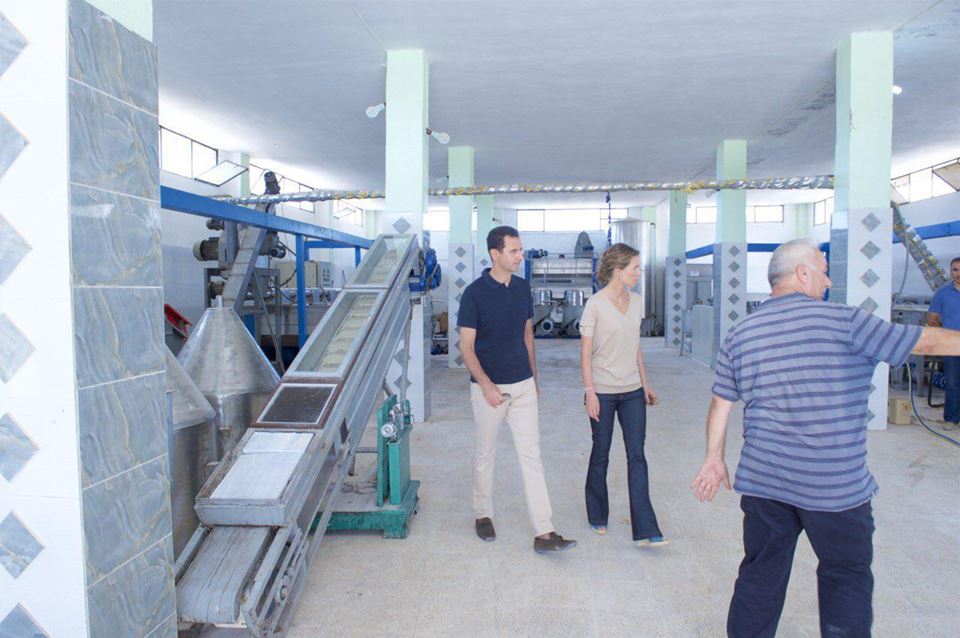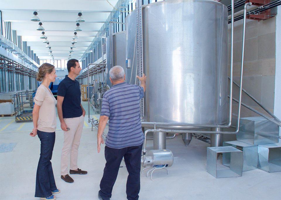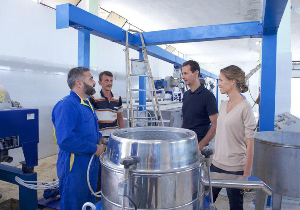 بشار الأسد و زوجته يزوران معملاً للألبان و الأجبان و معصرة زيتون في ريف طرطوس ( فيديو + صور )