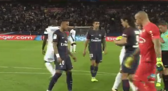 وكان اللاعب الأوروغوياني إيدسون كافاني قد قام بالتقاط الكرة بعد احتساب الحكم لركلة جزاء في الدقيقة الـ20 خلال لقاء باريس سان جيرمان وسانت إتيان، لحساب الدوري الفرنسي، حيث بدا من الواضح اقتراب نيمار منه وإظهاره رغبة بالتسديد لكن الأوروغوياني تجاهله بشكل كامل لتضيع على اللاعب البرازيلي فرصة الاحتفال بالتسجيل بثالث مباراة على التوالي بقميص فريقه الجديد.