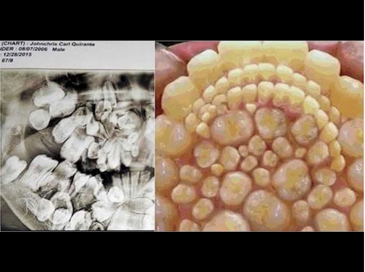 واكتشف الأطباء أن المراهق الهندي لديه عدد كبير من البروزات الشبيهة بالأسنان مرصوصة في فكه، وهي تتكون من المينا، أي الأنسجة التي تكون الأسنان، واضطر الأطباء لإجراء جراحة له بالفك لاستخراج تلك الأسنان غير المرغوب فيها.
