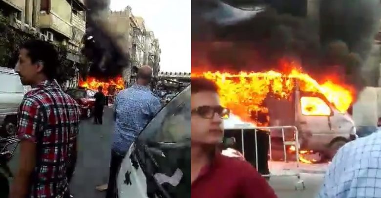 ممازحة بين سائق و شاب مختل عقلياً تنتهي باحتراق عدة سيارات وسط دمشق ( فيديو )