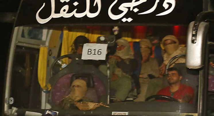 ويوجد نحو 300 مسلح من تنظيم الدولة الإسلامية، و300 مدني في القافلة التي منحها حزب الله اللبنانية ممرا آمنا، بعد استسلام المتشددين في جيب على الحدود السورية اللبنانية.