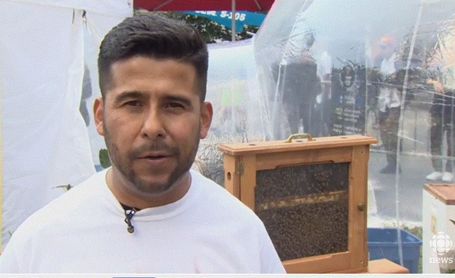 واستطاع “خوان كارلوس نوغوز أورتيز”، الذي يعمل في مزرعة لنحل العسل في أونتاريو الكندية، تحمل هذا الوضع لأكثر من ساعة.