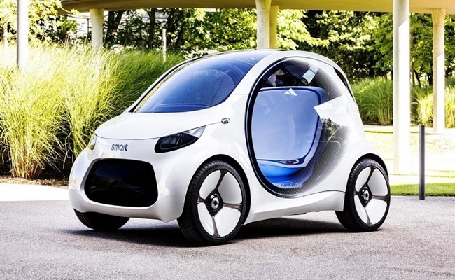 ستتقدم شركة سمارت السويسرية إلى معرض #فرانكفورت للسيارات بسيارة اختبارية خالية من عناصر القيادة التقليدية أي دون مقود ودواسات، و سميت هذه السيارة بـVision EQ Fortwo.