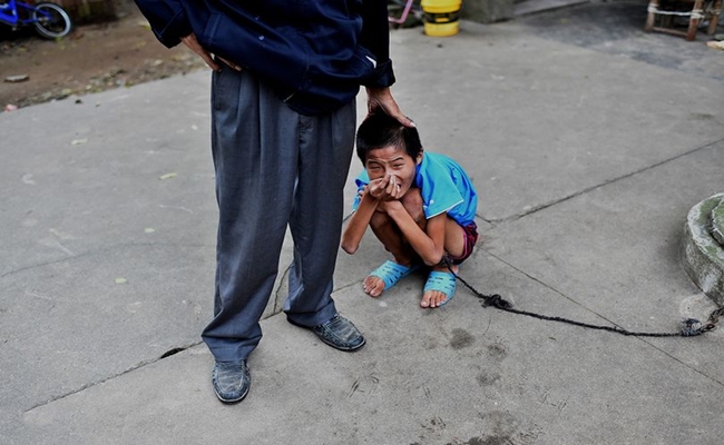 عجزت أسرة صينية فقيرة عن علاج طفلها المريض عقليًا، فقيّدته بالسلاسل منذ أن بلغ سن الـ 7 وحتى الآن، ويعاني يانغ جي، البالغ من العمر 17 عامًا، من إعاقة معرفية، لكنه يستطيع المشي دون مساعدة.