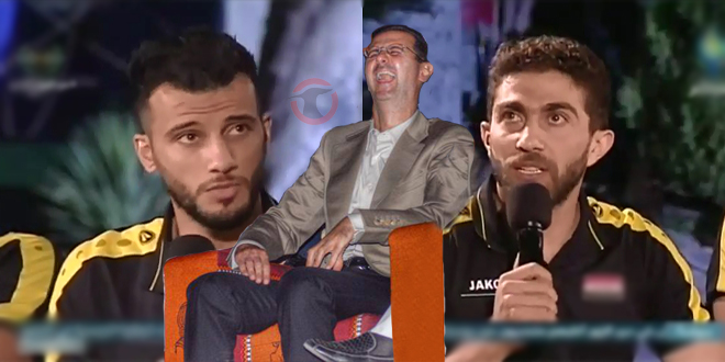 وجه اللاعبان فراس الخطيب وعمر السومة شكراً خاصاً لبشار الأسد، خلال سهرة احتفالية عبر تلفزيون النظام، مساء الأربعاء.