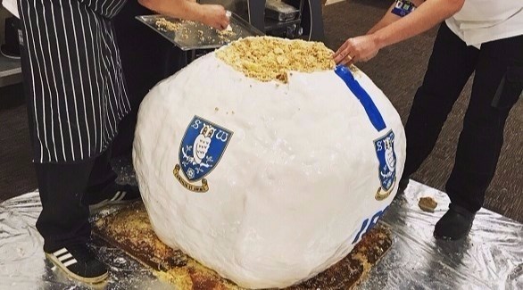 وقام فريق من الطهاة من نادي شيفيلد وينزداي البريطاني بصناعة كعكة ضخمة يبلغ وزنها 628 رطلاً أي ما يعادل 248 كيلوغراماً احتفالاً بالذكري الـ 150 لتأسيس النادي، بحسب ما نقلت شبكة سي إن إن، ودخلت الكعكة سجل غينيس للأرقام القياسية تحت لقب “أكبر كعكة كروية في العالم”.