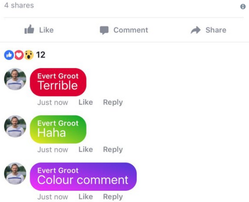 أبلغ عدد من رواد #فيسبوك عن استخدامهم خاصية جديدة تتيح تغيير ألوان التعليقات، والتي أتاحتها فيسبوك لبعض المستخدمين بهدف التجربة.