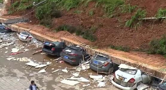 شاهد لحظة انهيار جدار في الصين و تدميره 10 سيارات ( فيديو )