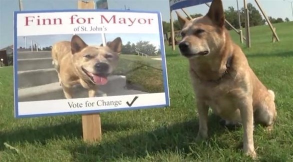 نشر مدرب الكلاب غلين ريدموند مقطع فيديو وهو يروج لأحد الكلاب كمرشح جديد لشغل منصب عمدة مدينة سانت جونز الكندية.