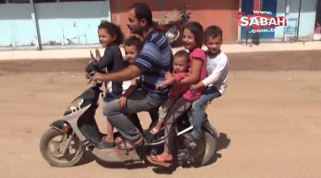 تركيا : سوري و أطفاله الخمسة على متن دراجة صغيرة و صحيفة تصفها بـ ” الرحلة الخطيرة ” ! ( فيديو )