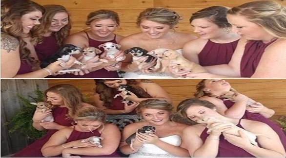 عروس أمريكية تستبدل أزهار الزفاف التقليدية بـ ” جراء ملونة ” !